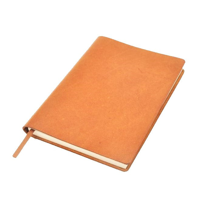 5-oz natural full-grained vegetable-tanned, buffalo hide leather cover, premium grade plain journal in A5 portrait format. The paper block is comprised of 120-page, 120 gsm, acid-free textured Swedish Maple Ivory paper. The paper is specially formulated for designers' and creative professionals' media including ink, pencil, coloured-pencils, pastel, marker, acrylic and water painting, printmaking and collage-making. Each signature of the paper stock is meticulously hand-stitched and bound to perfect alignment.