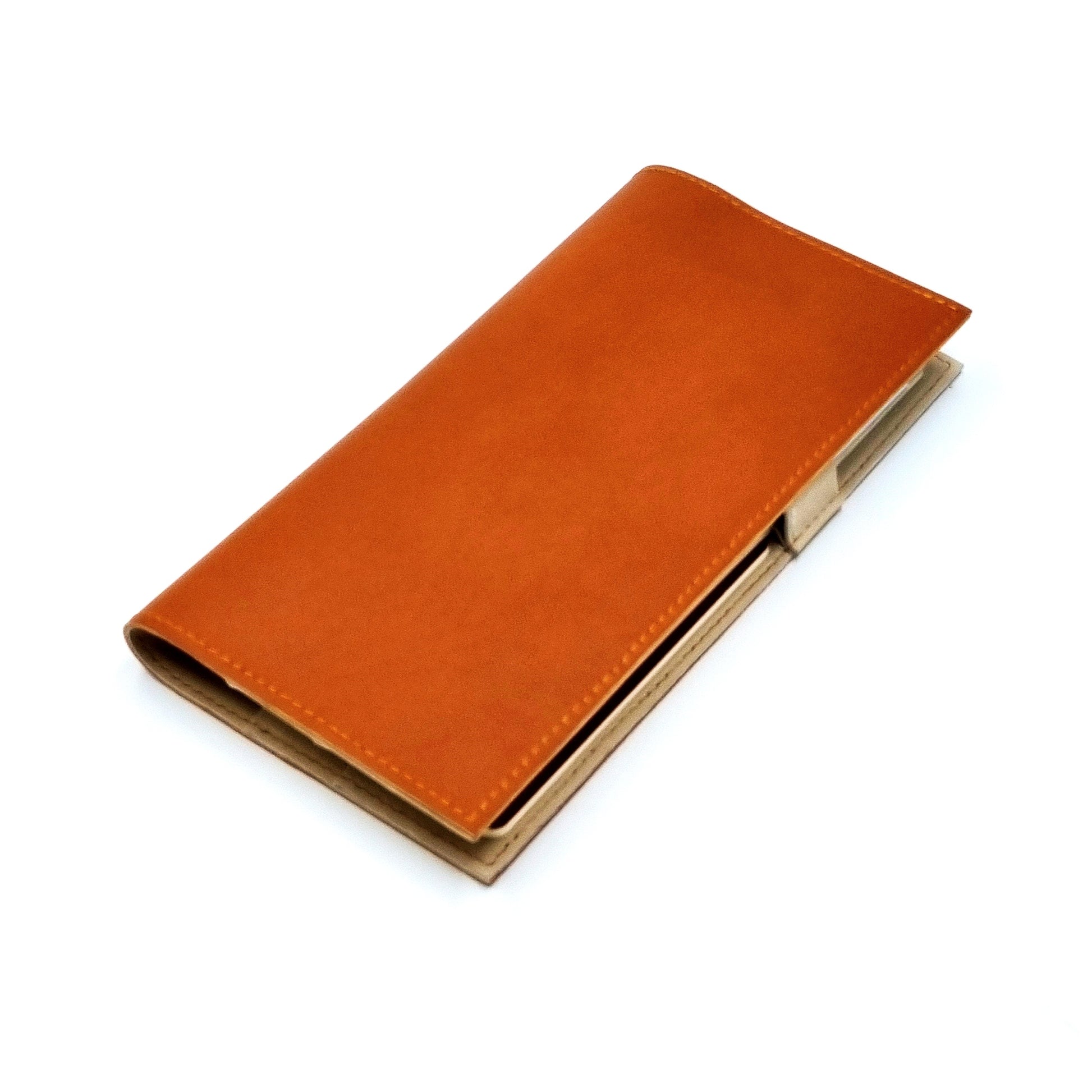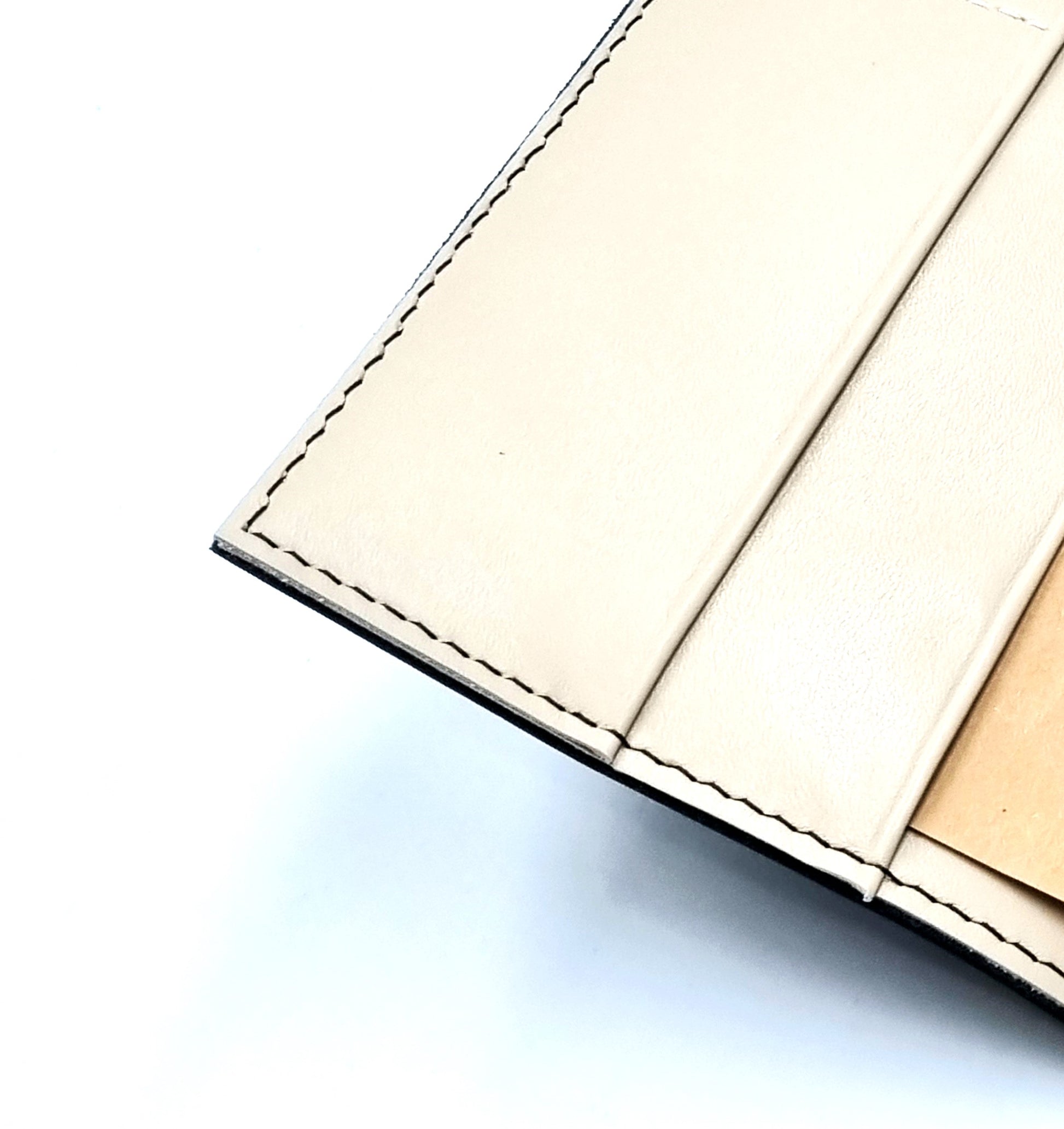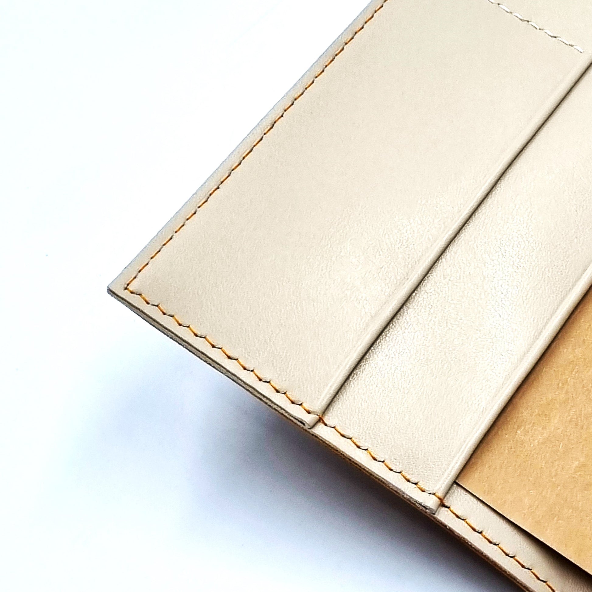 3-oz, natural full-grained vegetable-tanned, European cowhide leather DL and passport cover. Zero-waste design in classic duo-tone colour. The sleeve is fully saddle-stitched by hand - a time-honoured method in leather crafting, which ensure decades of use.