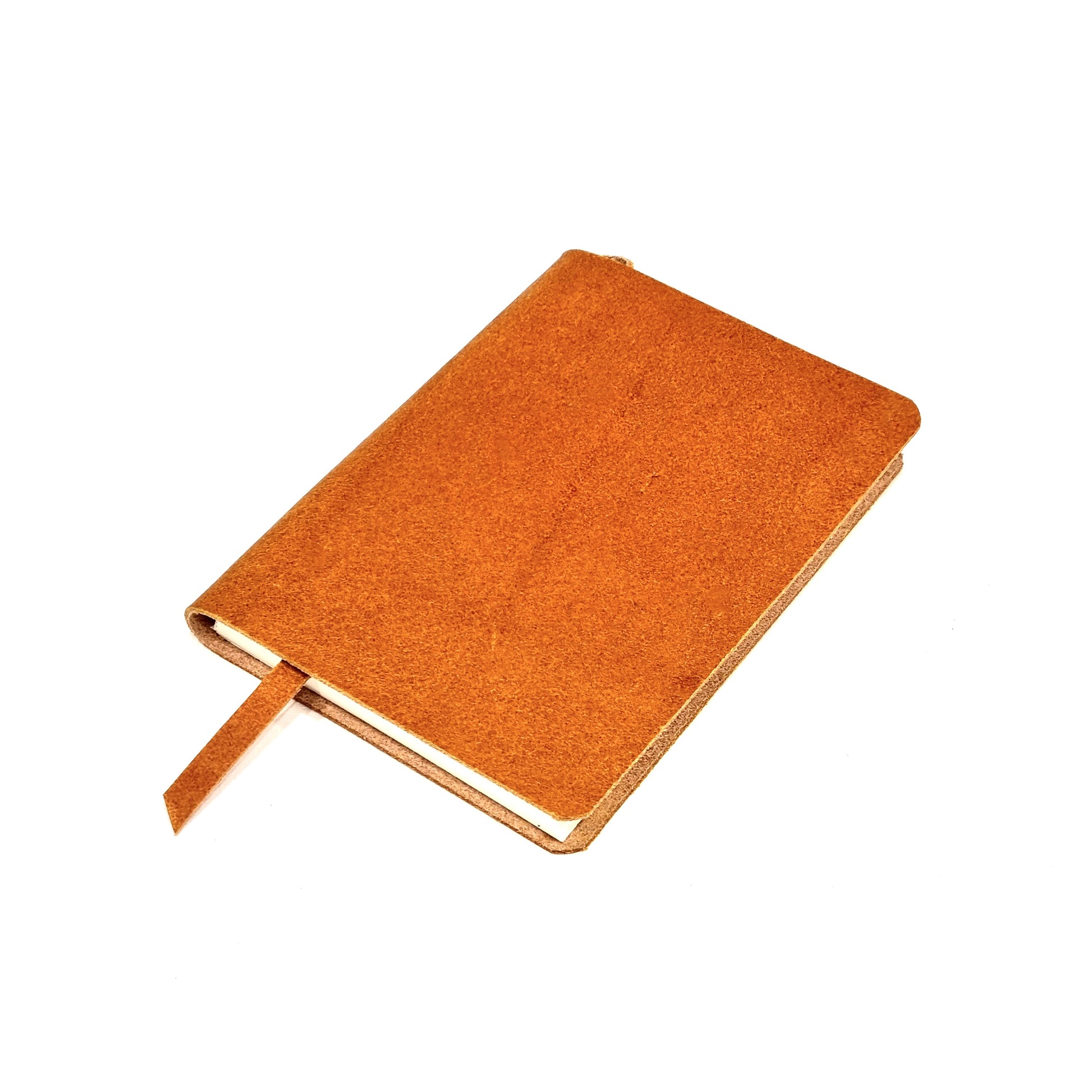 3-oz natural upcycled vegetable-tanned, cowhide leather cover, premium grade designer's journal in A6 portrait format. The paper block is comprised of 120-page, 120 gsm, acid-free textured Swedish Maple Ivory paper. The paper is specially formulated for designers' and creative professionals' media including ink, pencil, coloured-pencils, pastel, marker, acrylic and water painting, printmaking and collage-making. Each signature of the paper stock is meticulously hand-stitched and bound to perfect alignment.