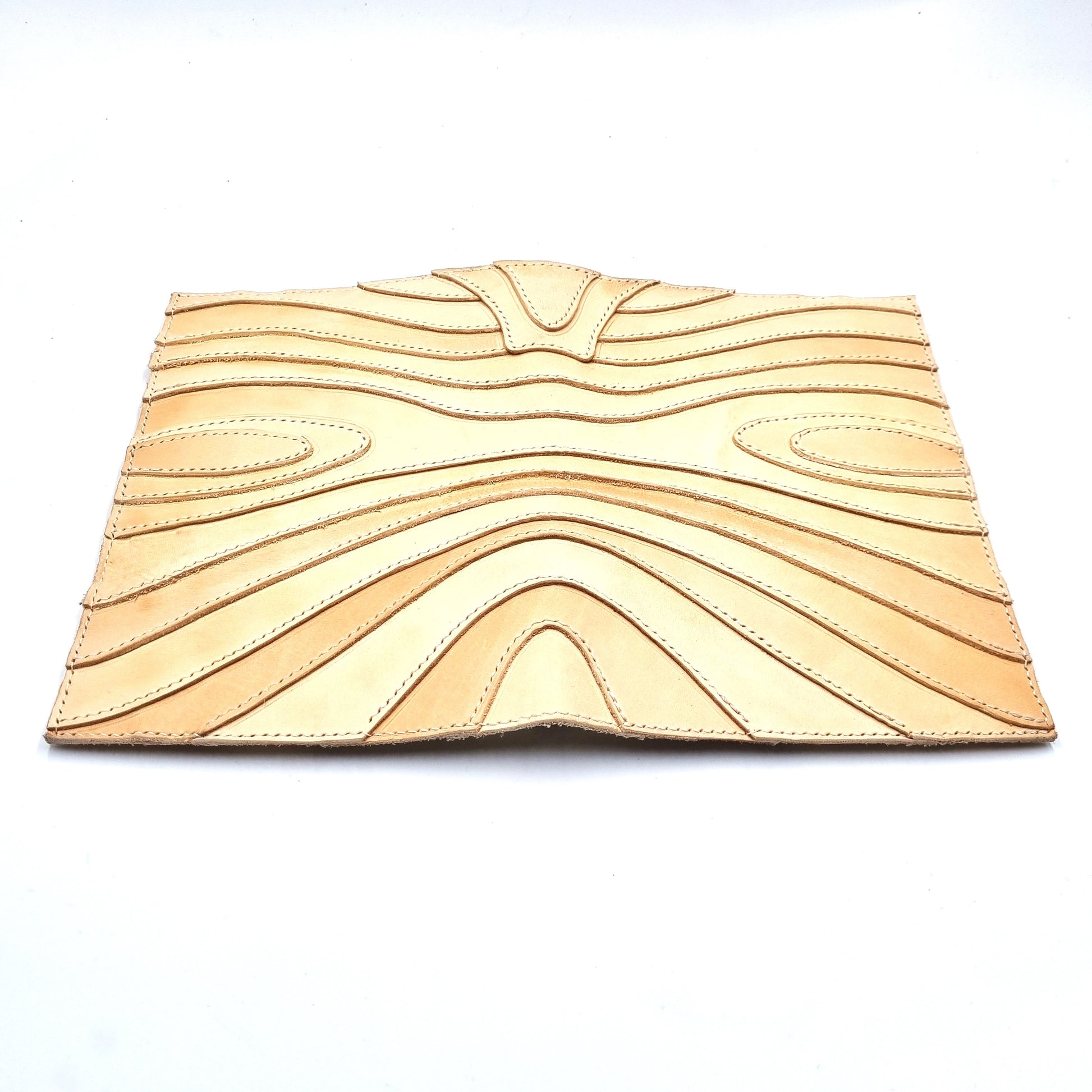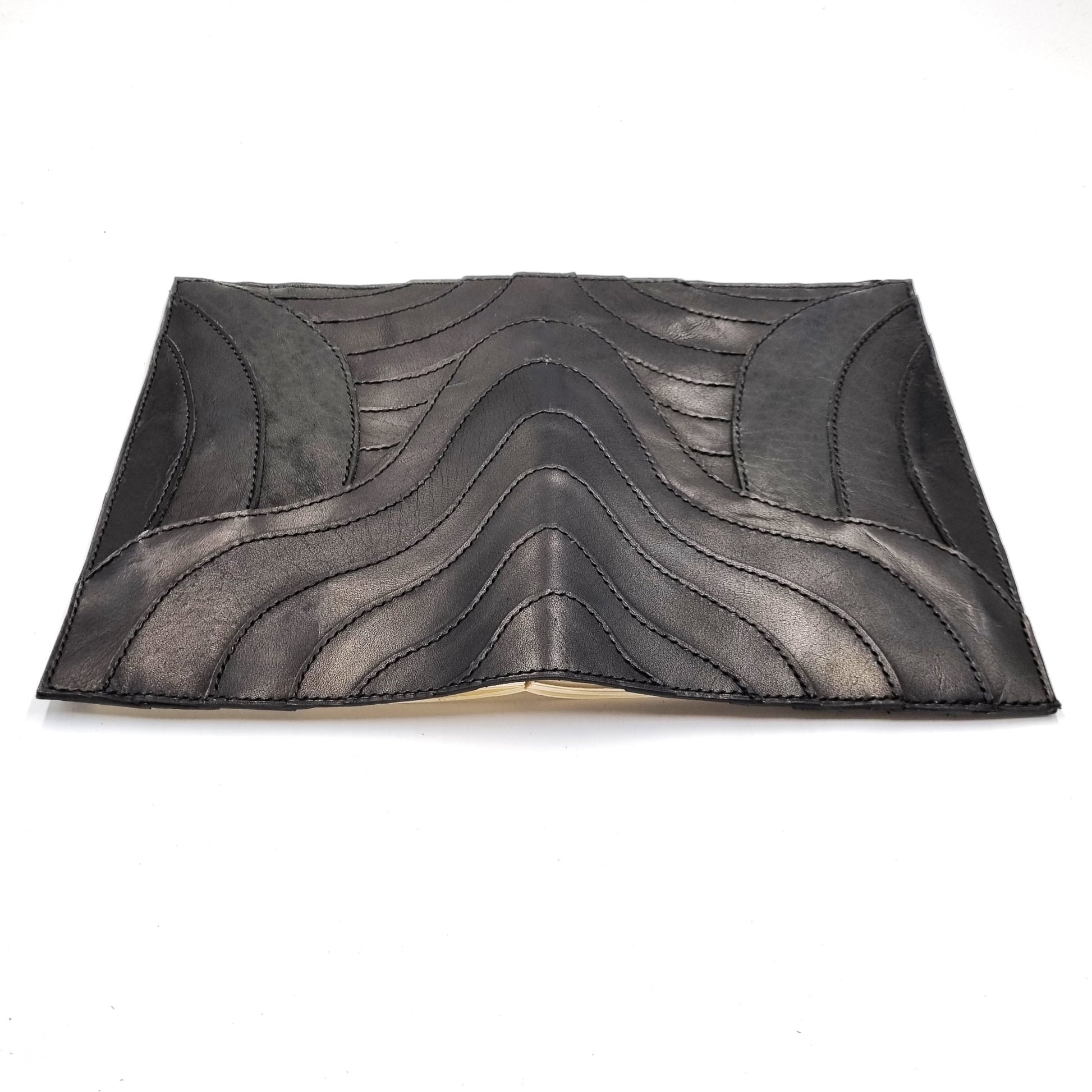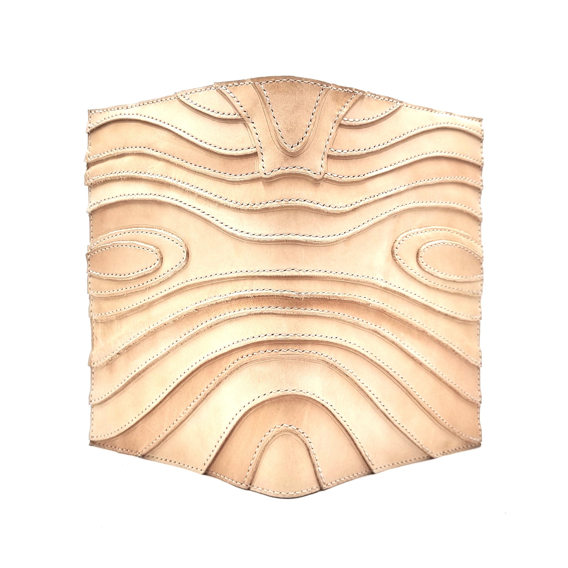 The collection, manifested in notebook covers and framed art pieces, traced the Langer's lines around the chest, shoulder, back, waist, hip, abdomen and limbs areas, using meticulously hand-cut, upcycled full-grained vegetable-tanned cowhide or buffalo leather pieces, to compose intimate yet surreal patterns for the book covers.