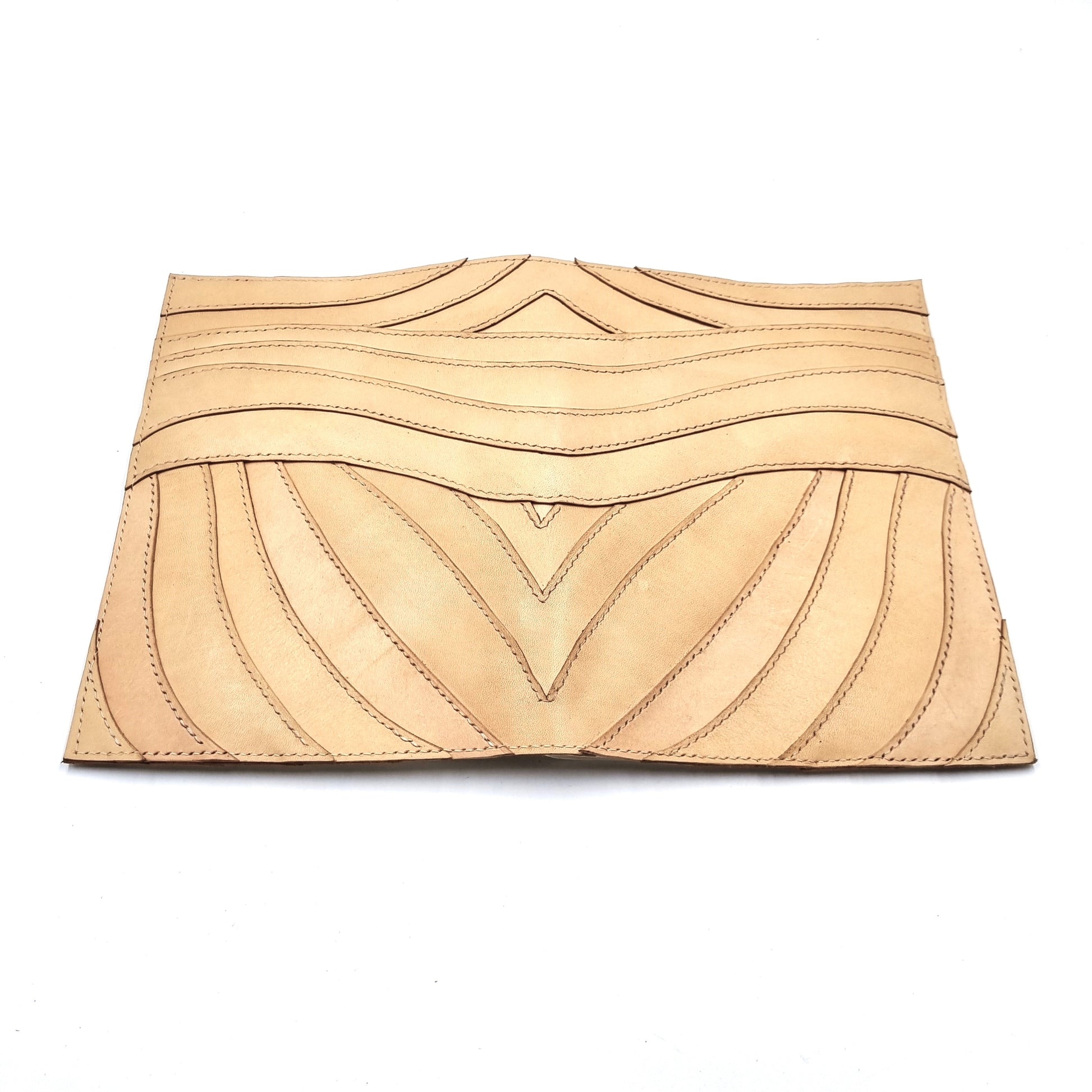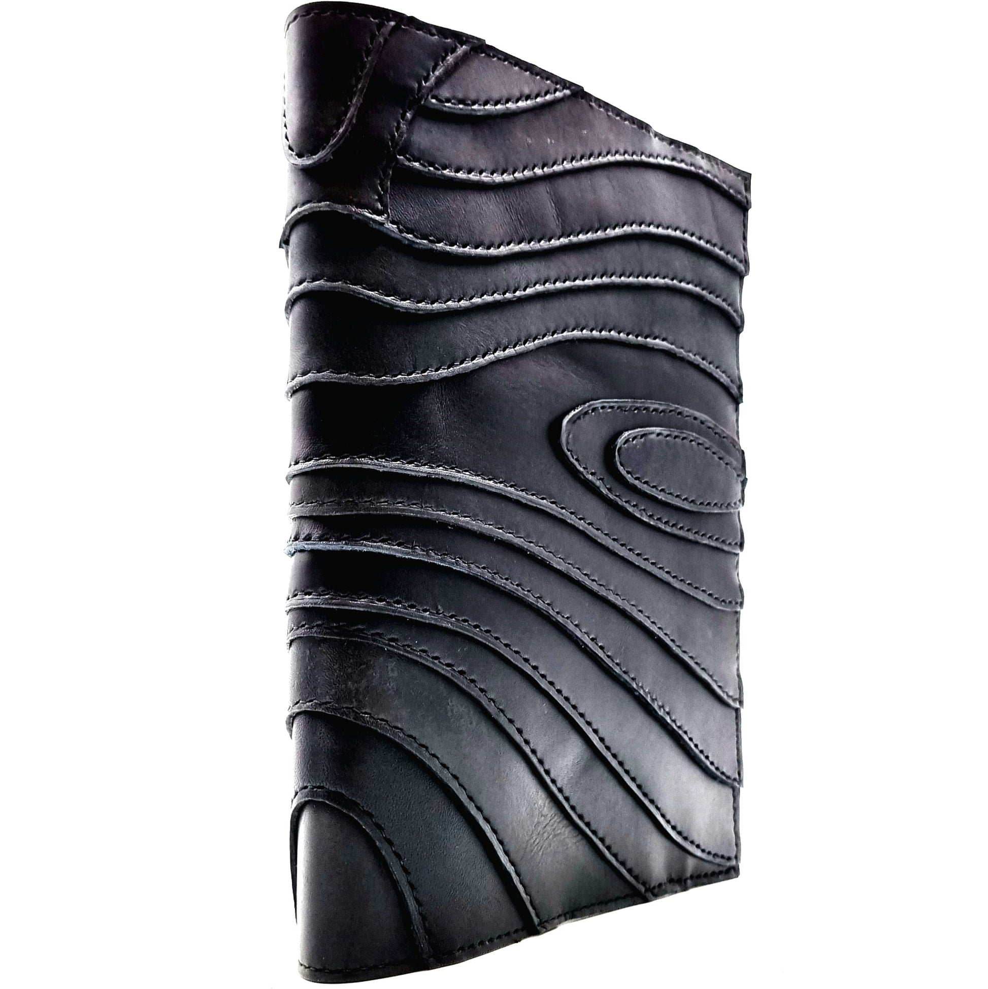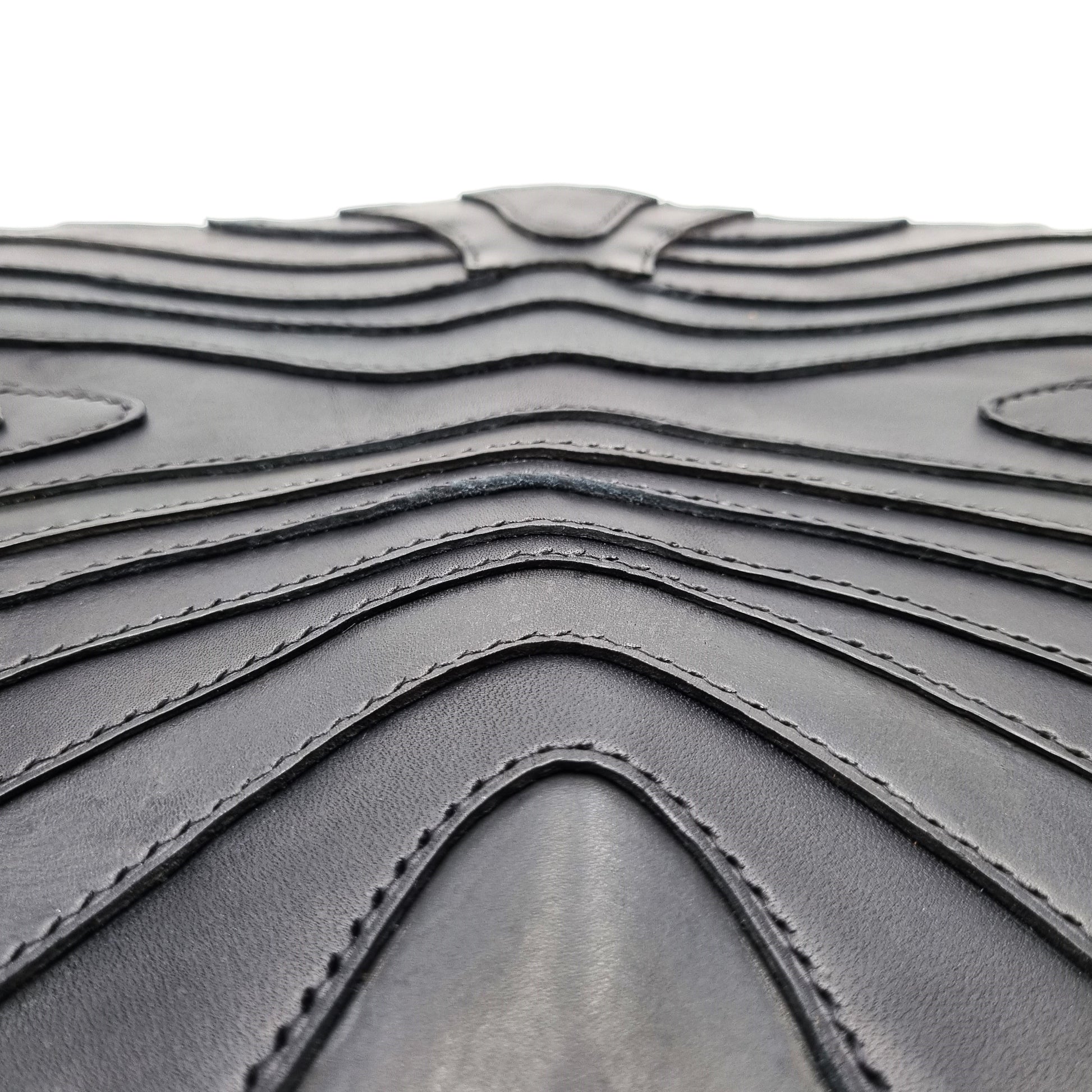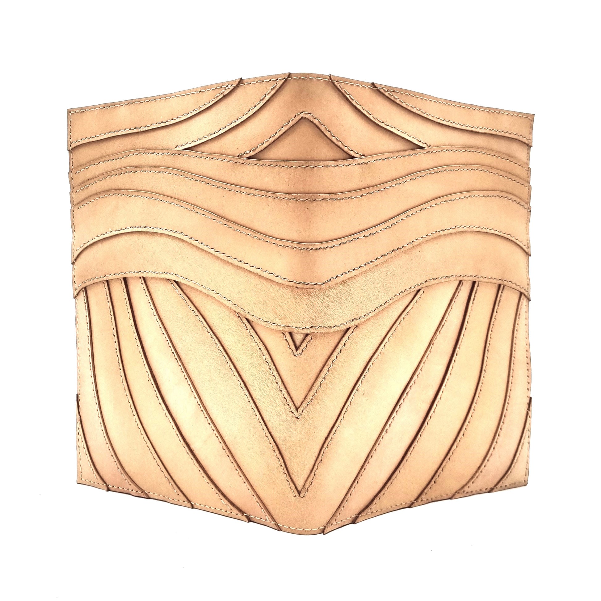 The collection, manifested in notebook covers and framed art pieces, traced the Langer's lines around the chest, shoulder, back, waist, hip, abdomen and limbs areas, using meticulously hand-cut, upcycled full-grained vegetable-tanned cowhide or buffalo leather pieces, to compose intimate yet surreal patterns for the book covers.