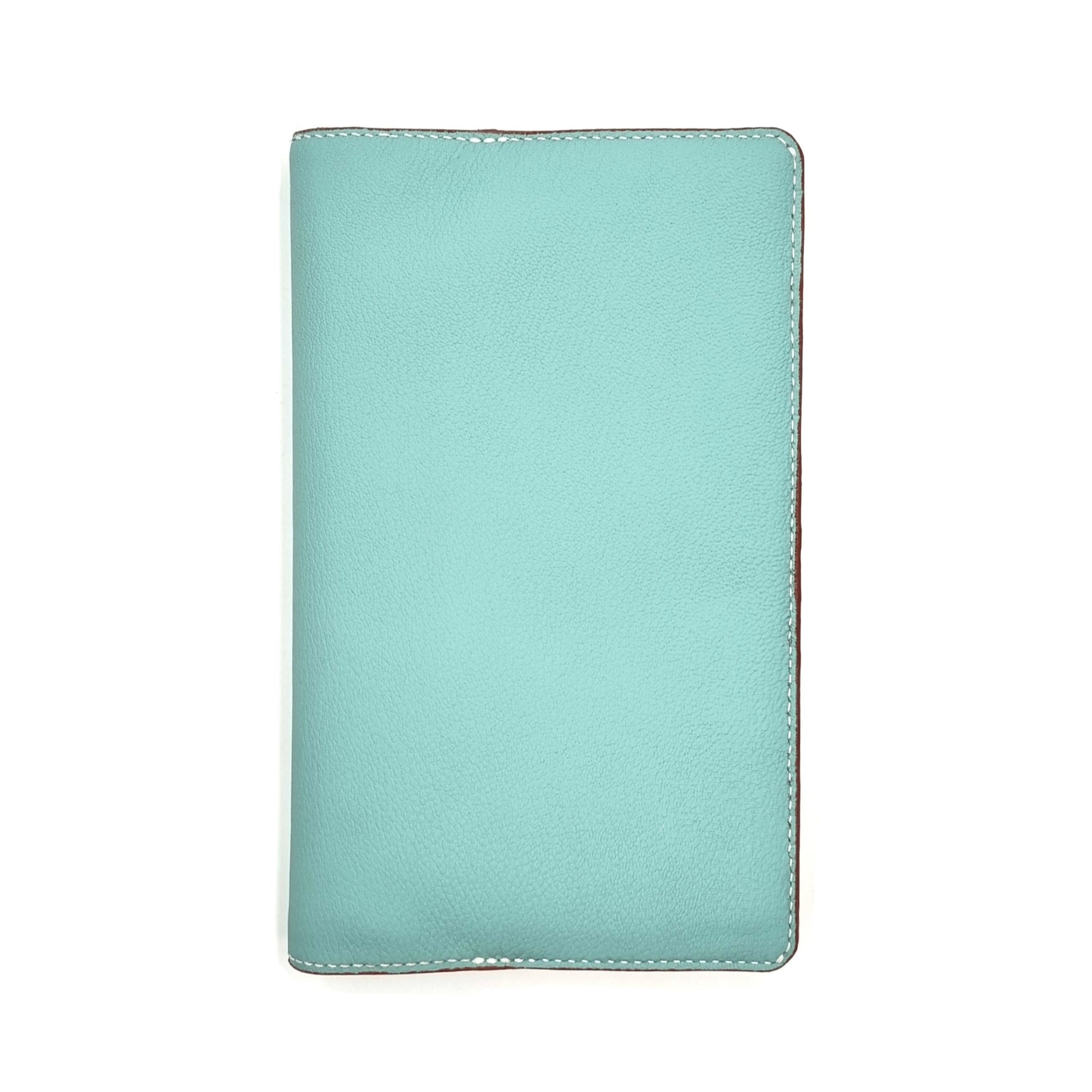 3-oz, natural full-grained French ALRAN SULLY vegetable-tanned, goat leather bible cover in A5 portrait format. The lining is of genuine French goat leather, providing additional protection and cushioning for the bible.  The cover and inner lining full leather design ensures decades of use without slackening or splitting.  The cover is fully and meticulously hand crafted and stitched by experienced leather artisans.