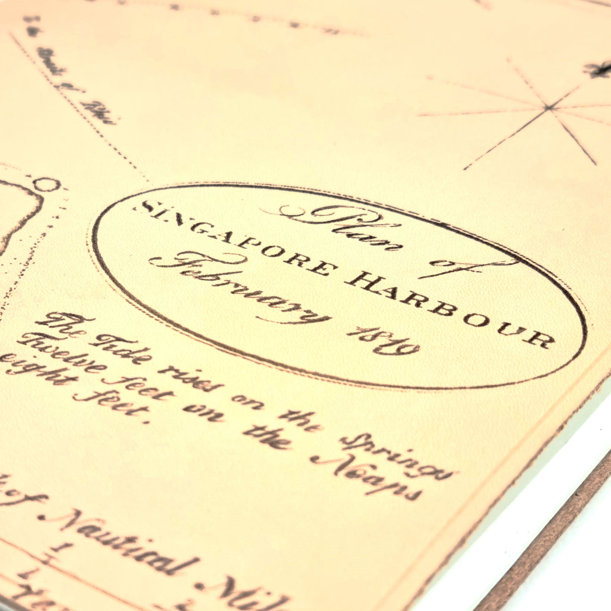 The map image on the cover is inspired by the very first map of the Singapore Harbour drawn by Captain Daniel Ross, a hydrographer accompanying Sir Stamford Raffles, in February 1819 prior to the signing of the Singapore Treaty.  The map was then officially published in May 1819 in the Calcutta Journal.  It is believed that this map was instrumental in the Treaty negotiation between Raffles and Temenggong on the 6th February 1819.