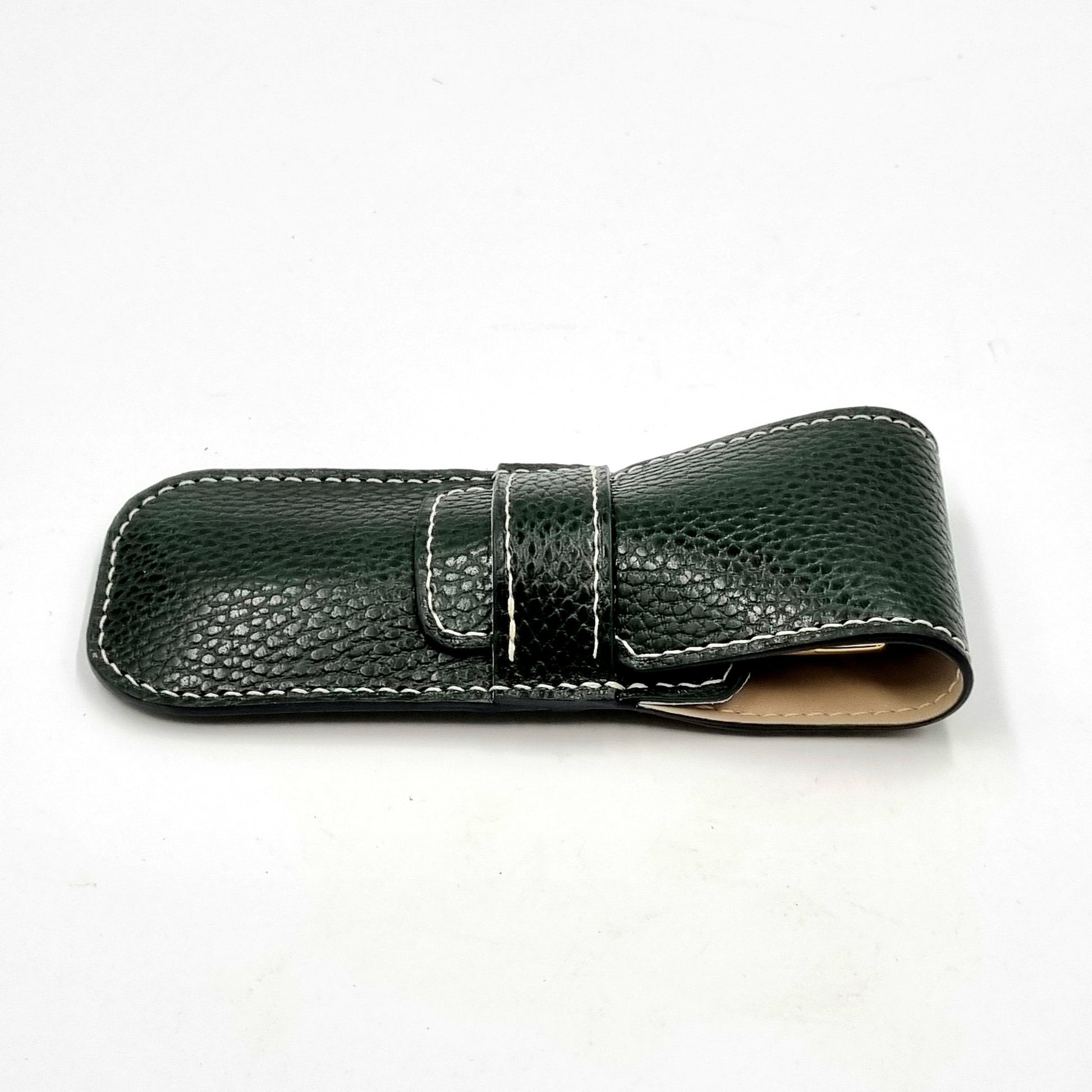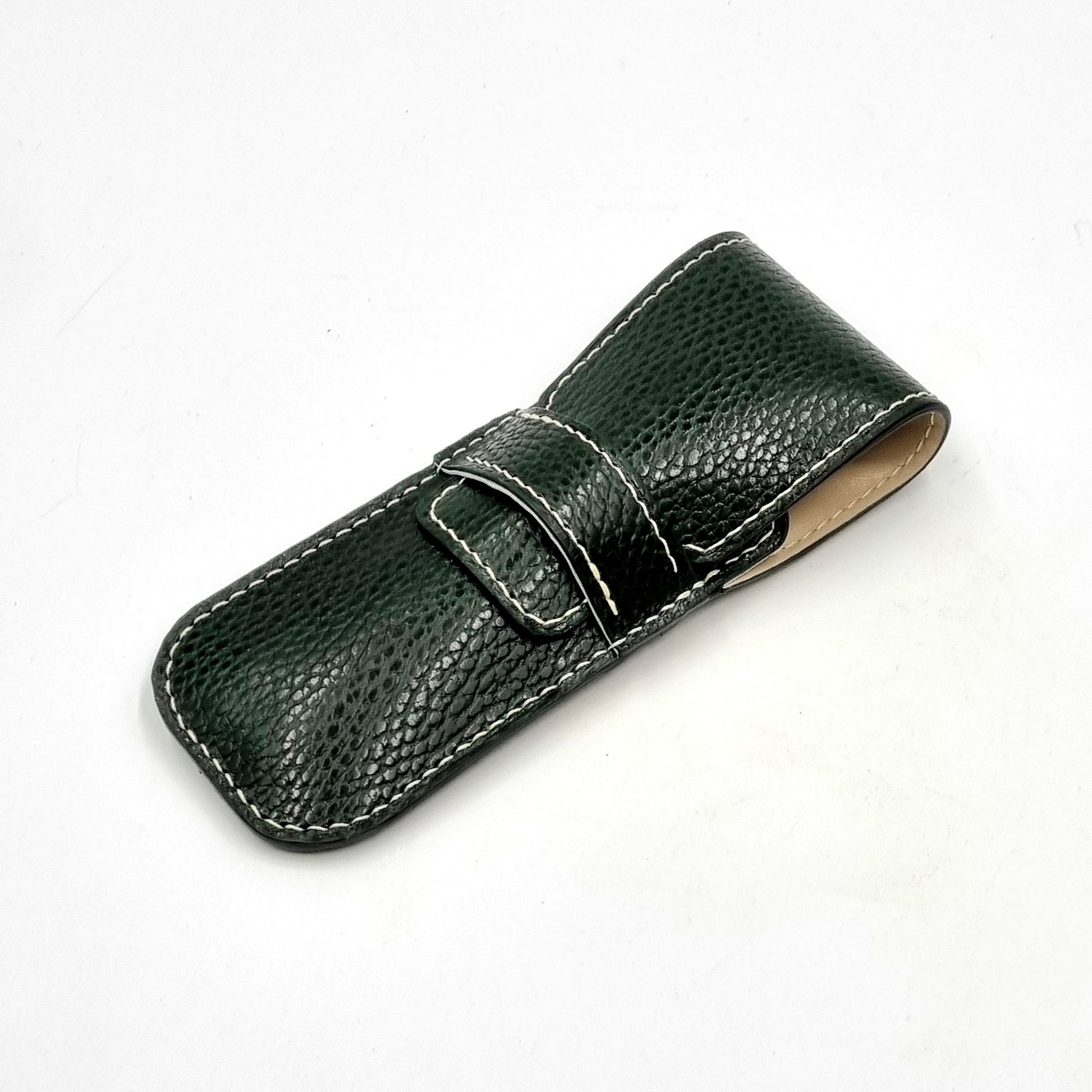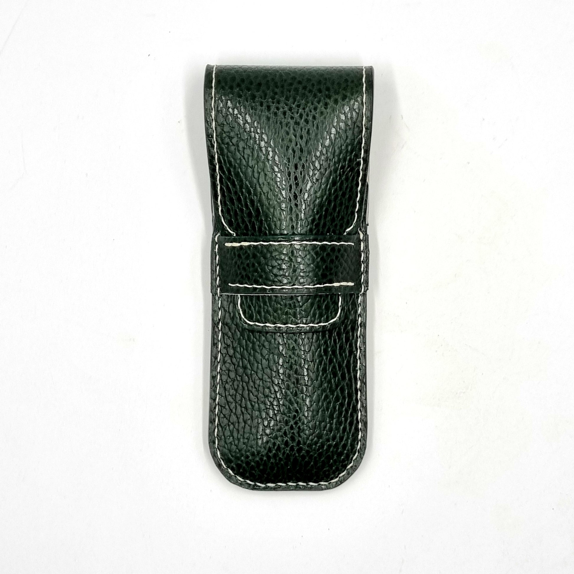 Leather pen case designed to hold 2 drawing or fountain pens.