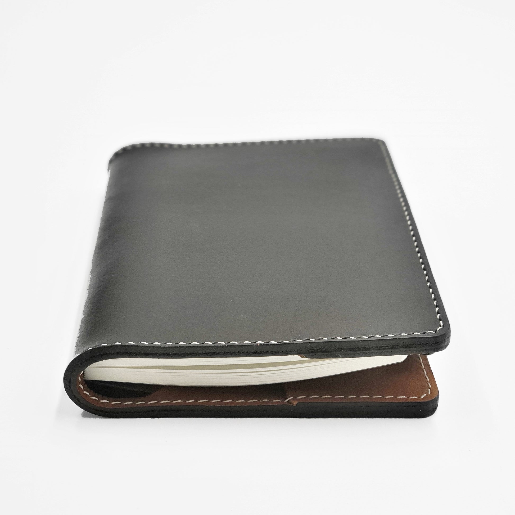 Sleeve fits selected brands of perfect-bound and saddle-stitched spine soft cover A6 plain journals, notebooks and sketchbooks including Clairefontaine, Strathmore and Muji.