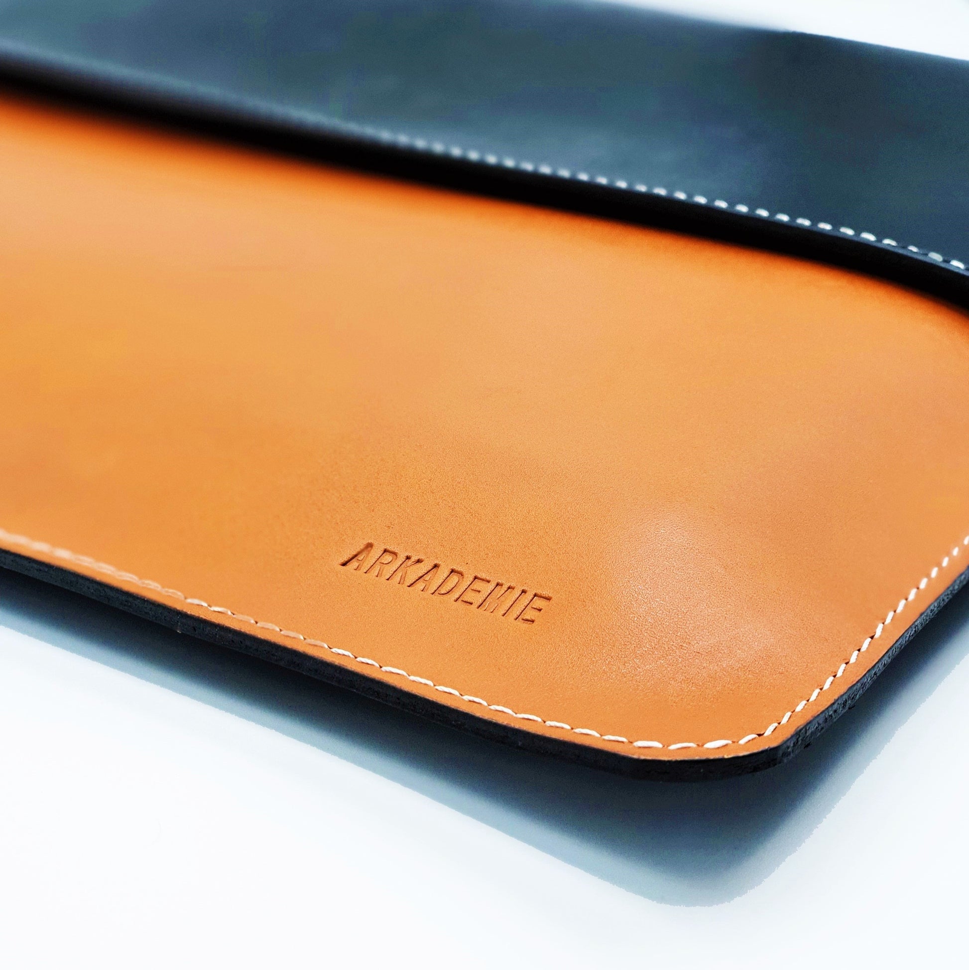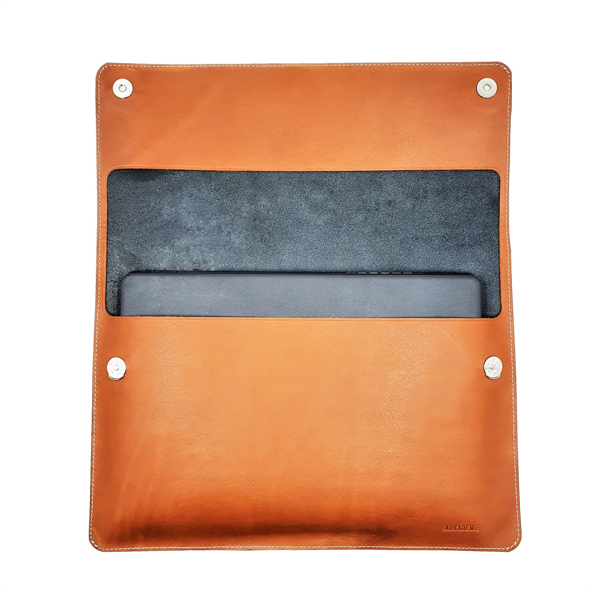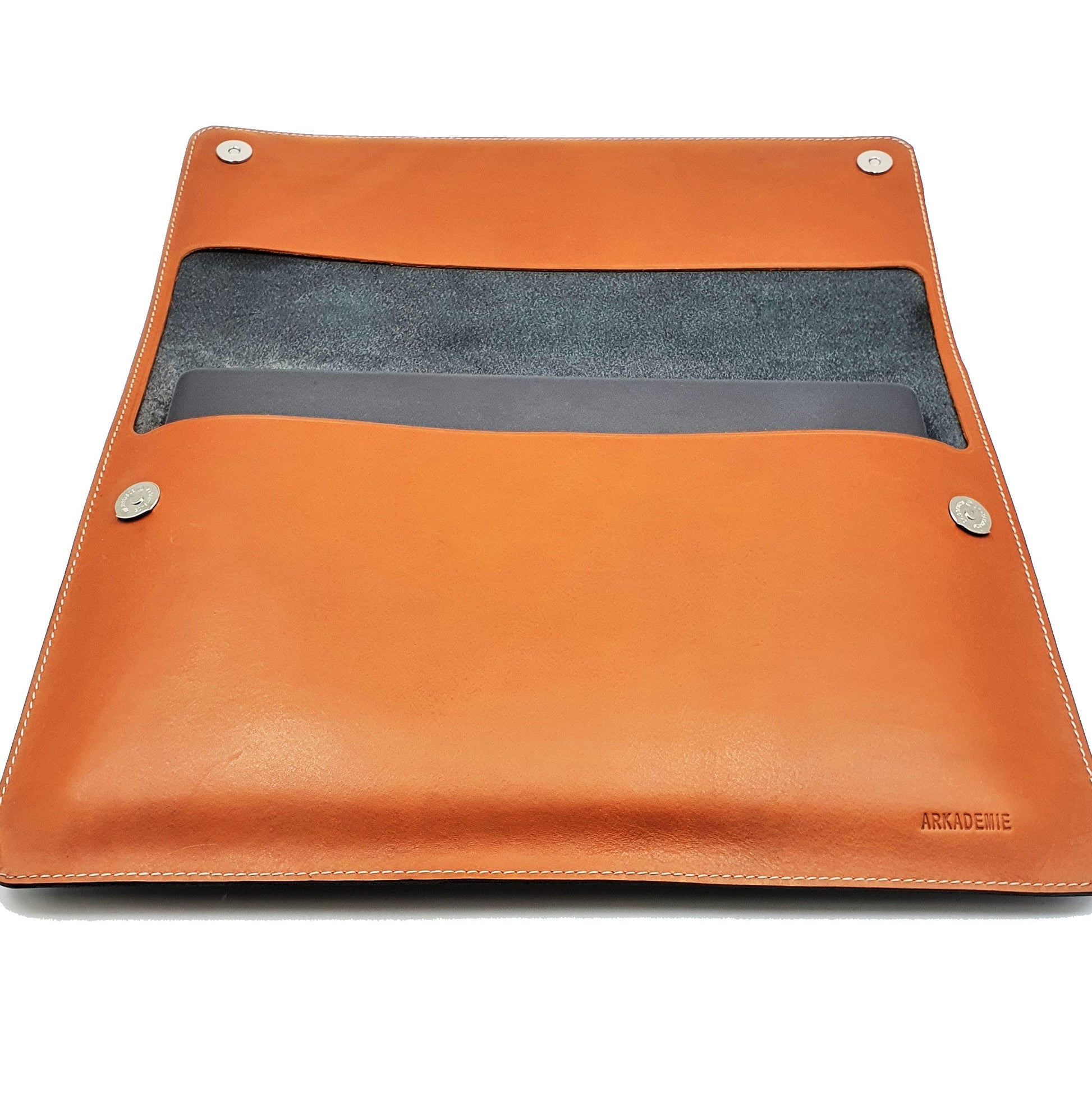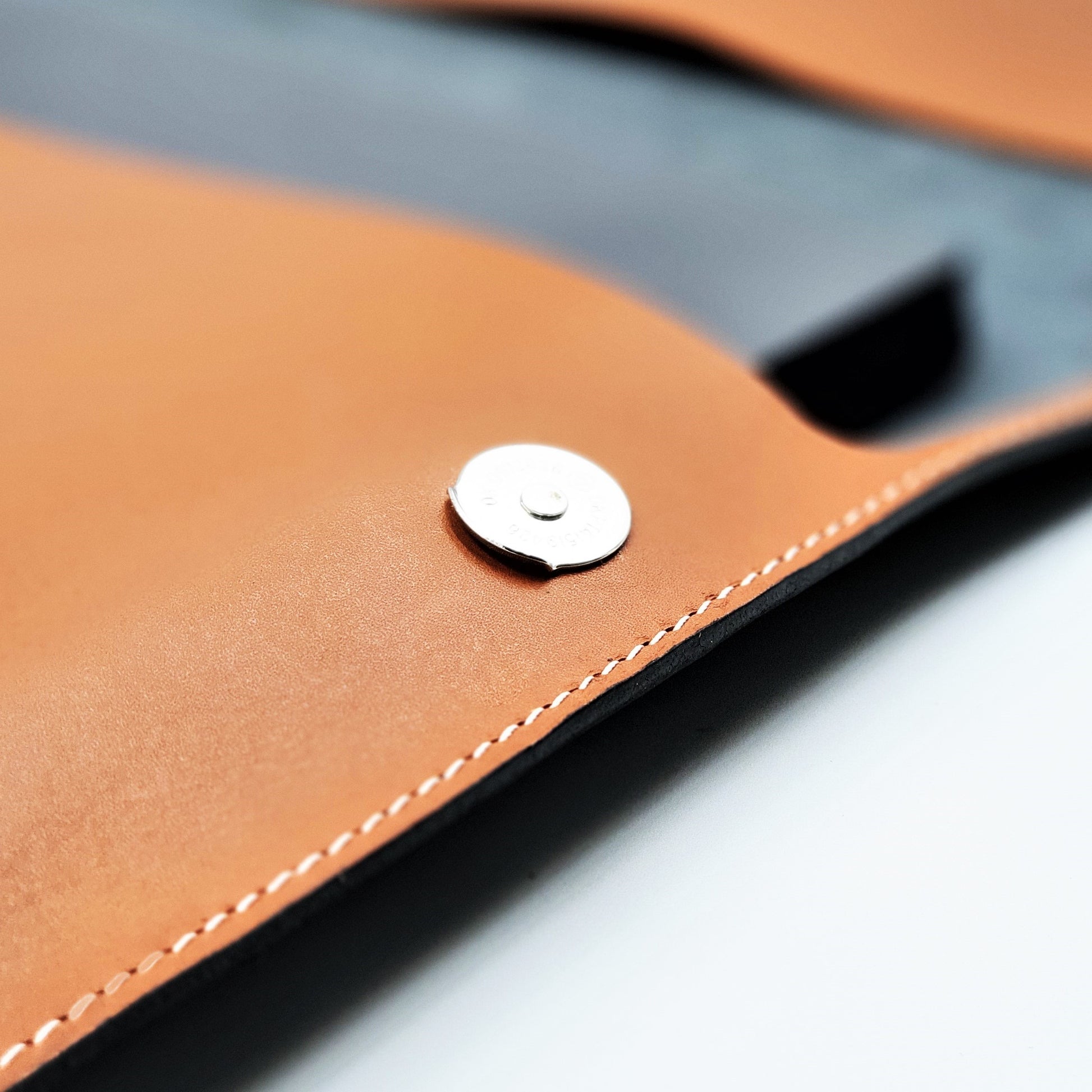 4-oz natural, vegetable-tanned, full-grained cowhide leather Document and Laptop Case for 14" laptop.