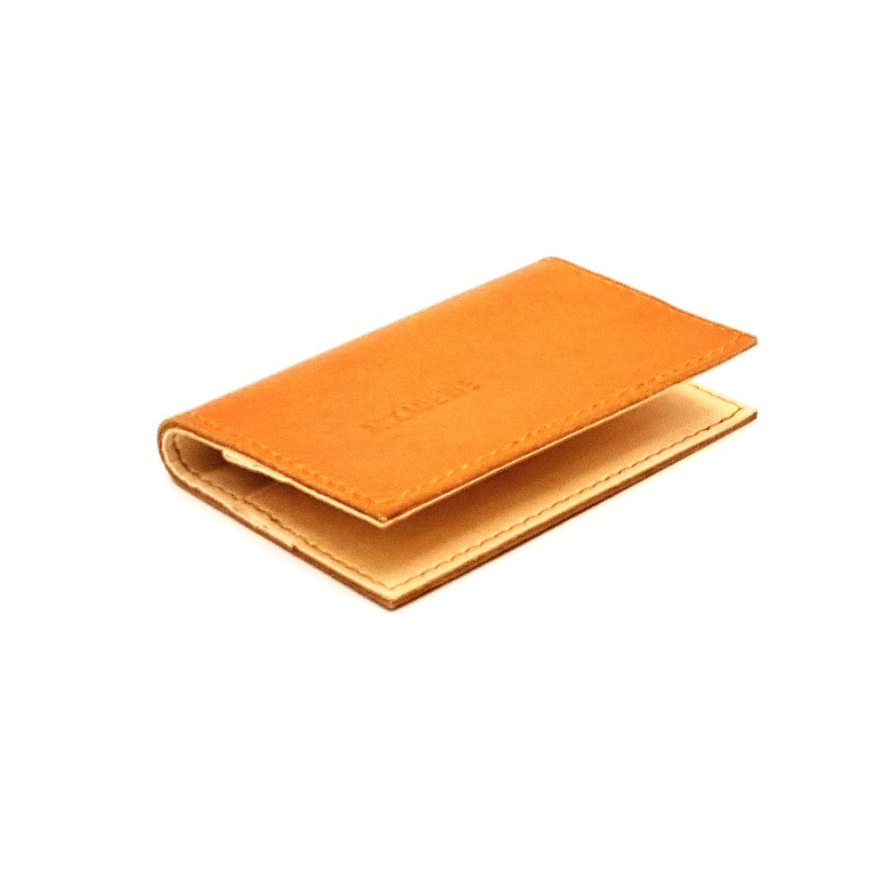 3-oz, natural full-grained vegetable-tanned, European cowhide leather name card case. Zero-waste design in classic duo-tone colour. The sleeve is fully saddle-stitched by hand - a time-honoured method in leather crafting, which ensure decades of use.