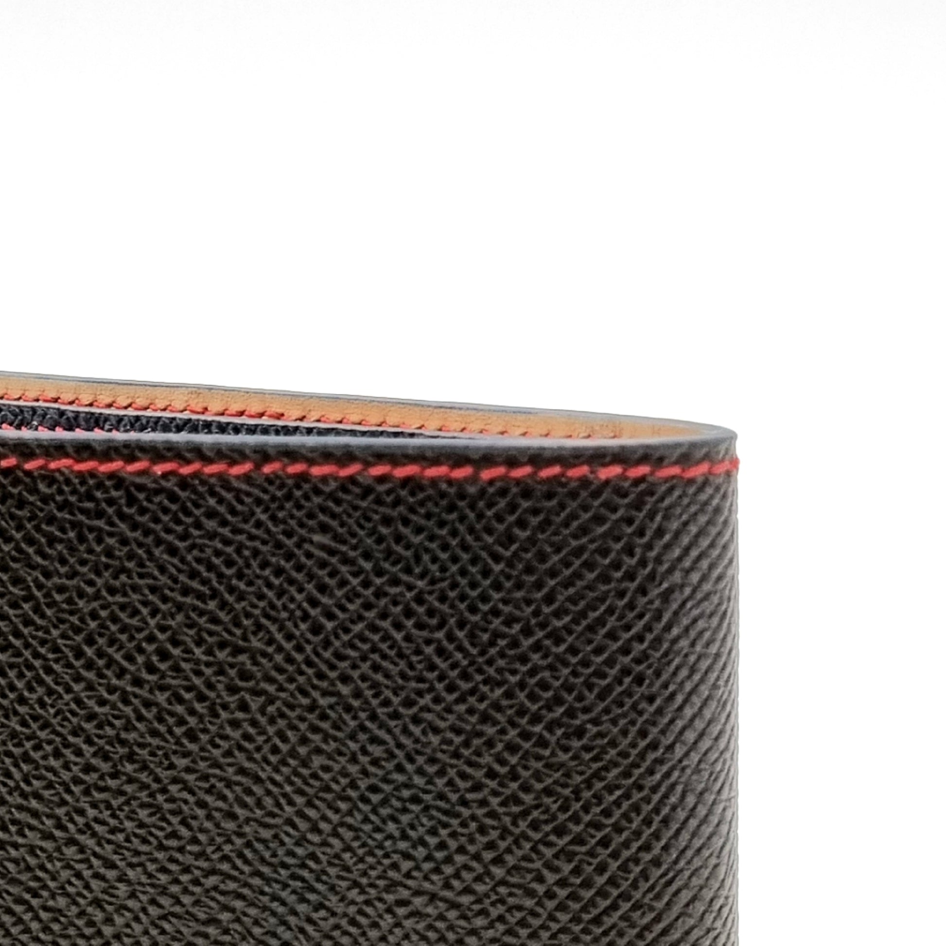 The Italian EPSOM vegetable-tanned leather is renowned for its robust and scuff-resistant surface among cowhide leathers.  It features a signature waxy, pebbled texture with a semi-rigid hand feel, making it suitable for case goods with firm structures.  It is exceptional for making men's leather goods such as wallets, folders and bags.