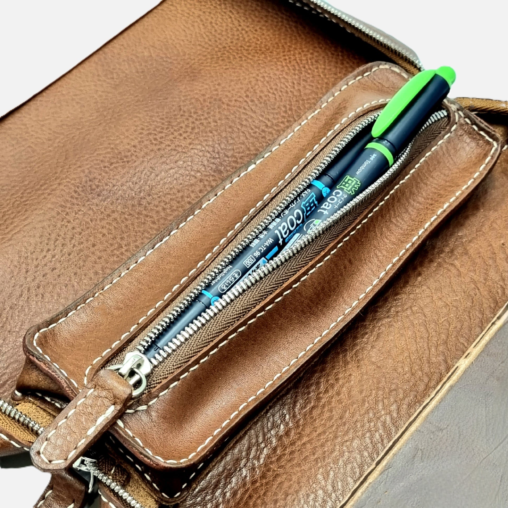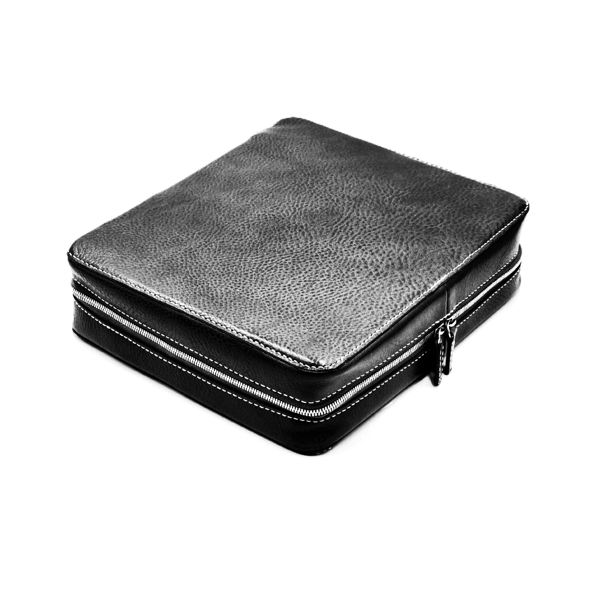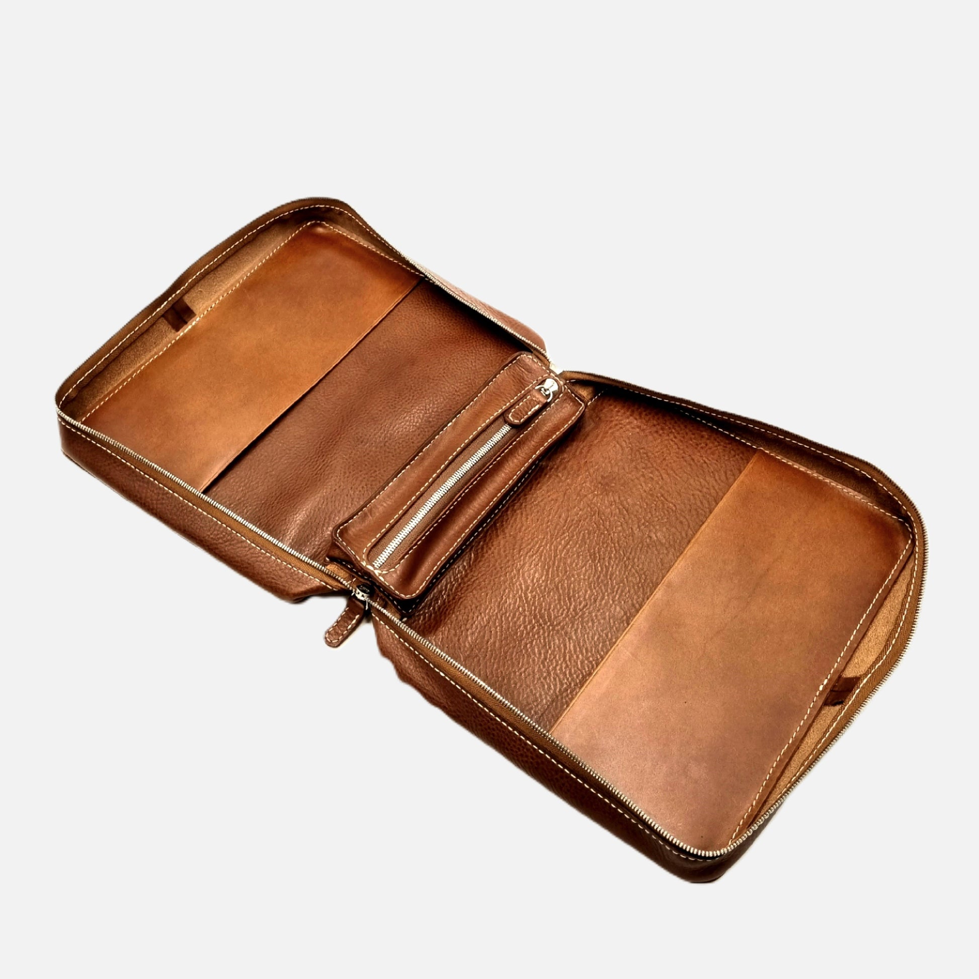 Natural leather grain pattern, unique to each hide, can be seen on the cover and will acquire a natural satin lustre over time.