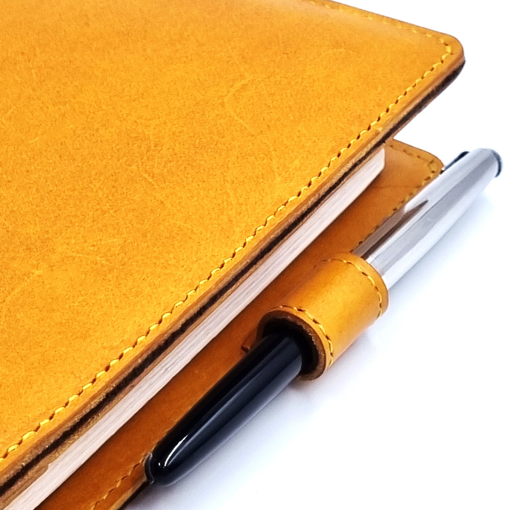 Natural leather grain pattern, unique to each hide, can be seen on the cover and will acquire a natural satin lustre over time.