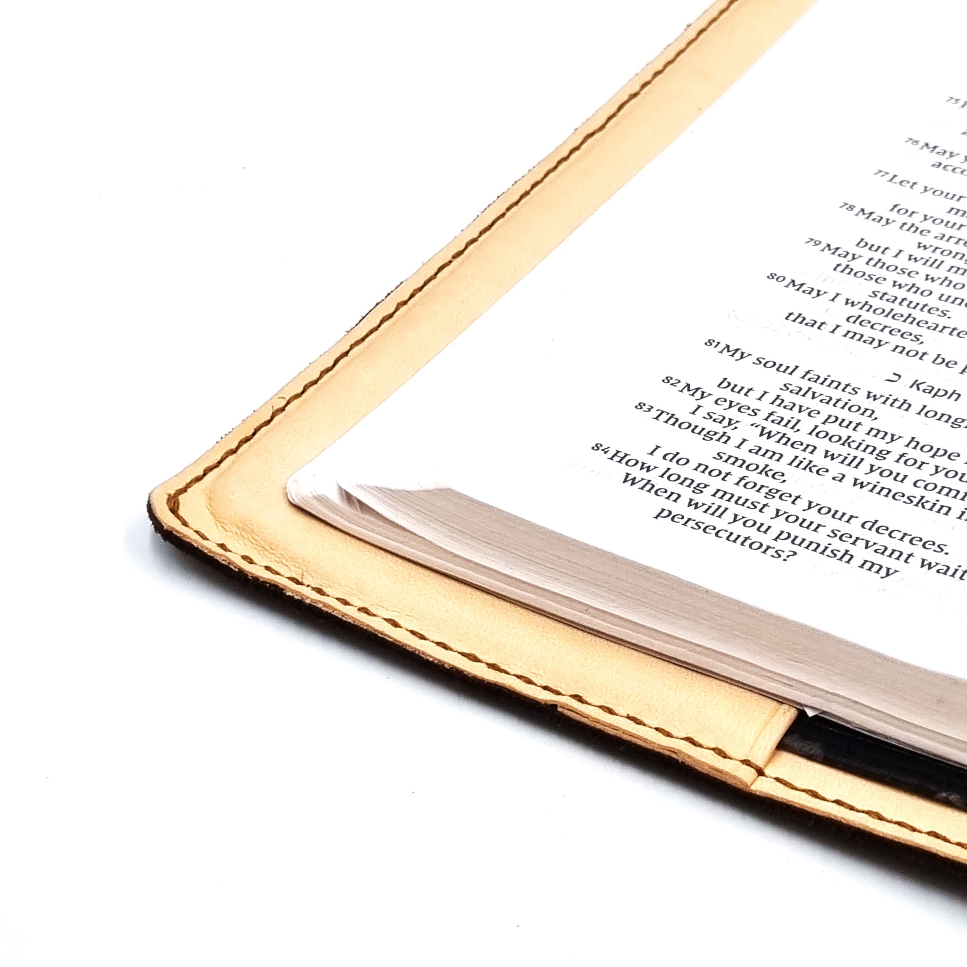Cover fits most brands of perfect-bound and saddle-stitched spine A5 bibles.  Please check actual dimension of bible before placing order.