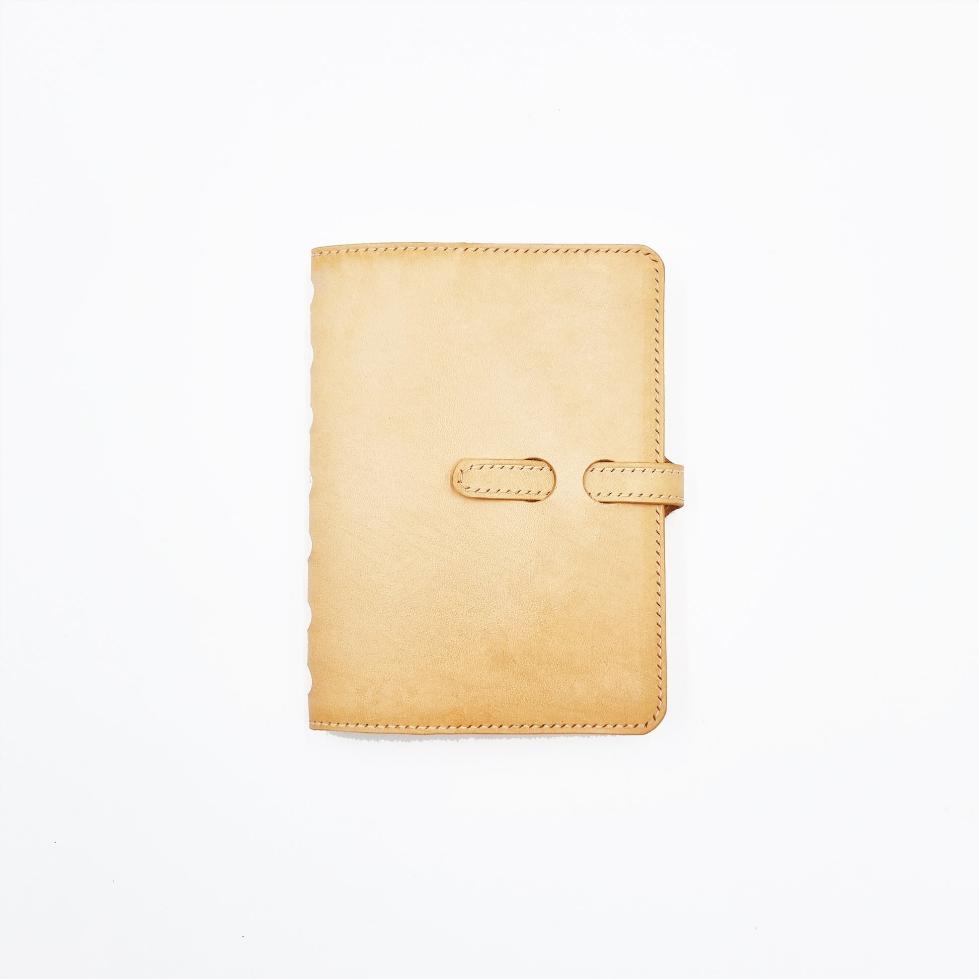 4-oz, natural full-grained vegetable-tanned, cowhide leather traveller's journal and notebook sleeve in A6 portrait format. The sleeve's leather strap-and-keeper design ensures decades of use without slackening or splitting.  The sleeve is fully and meticulously hand crafted by experienced craftsmen.
