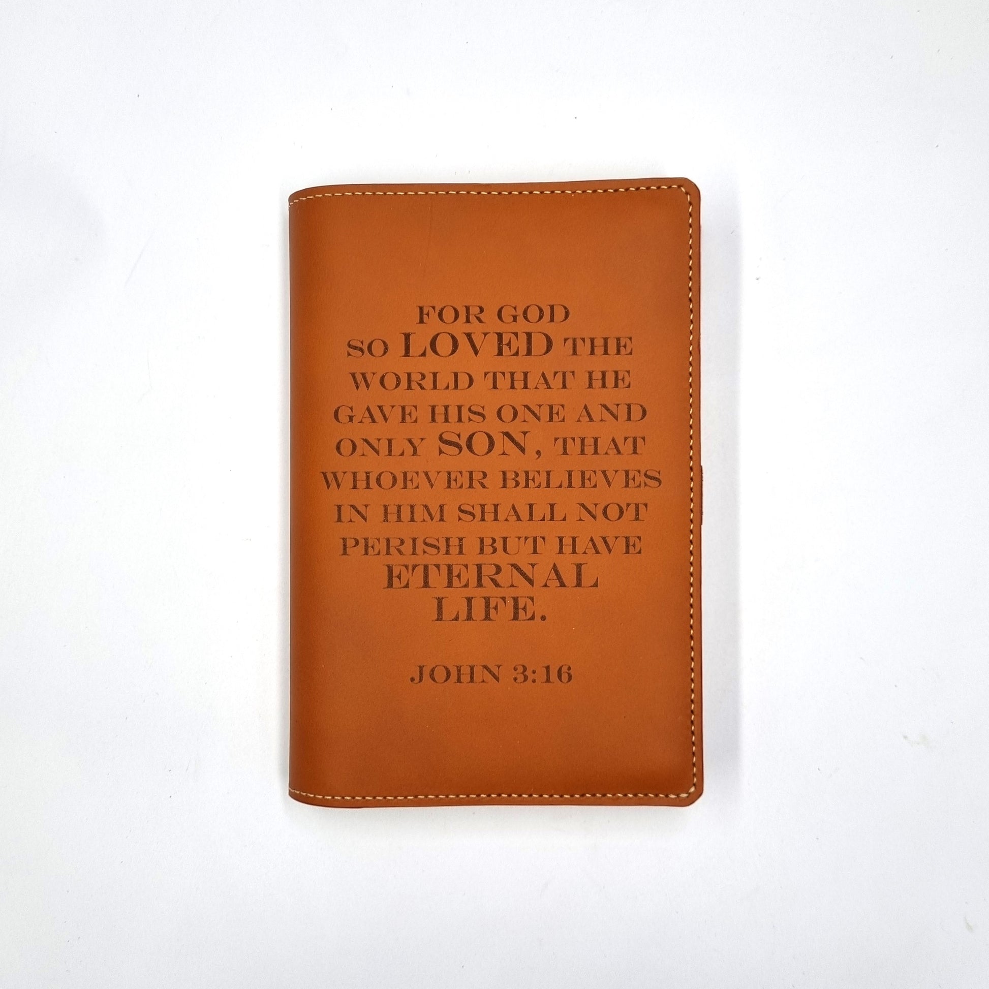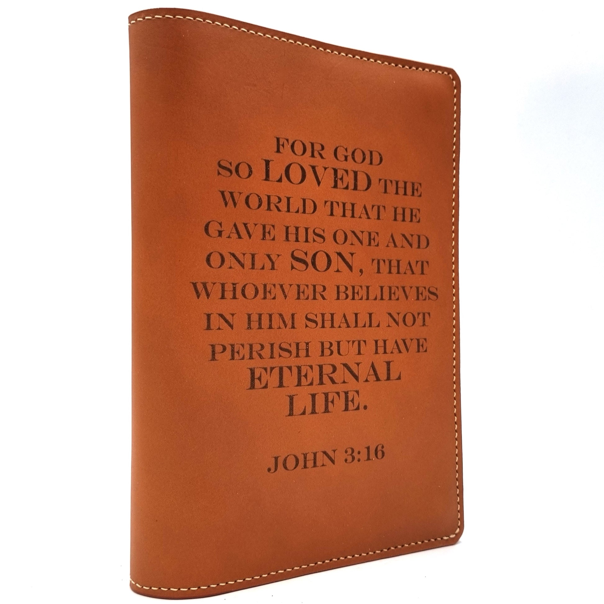 The English biblical verses on the front cover are fully customizable.  Please send your preferred verses to our corporate email address at contact@arkademie.com