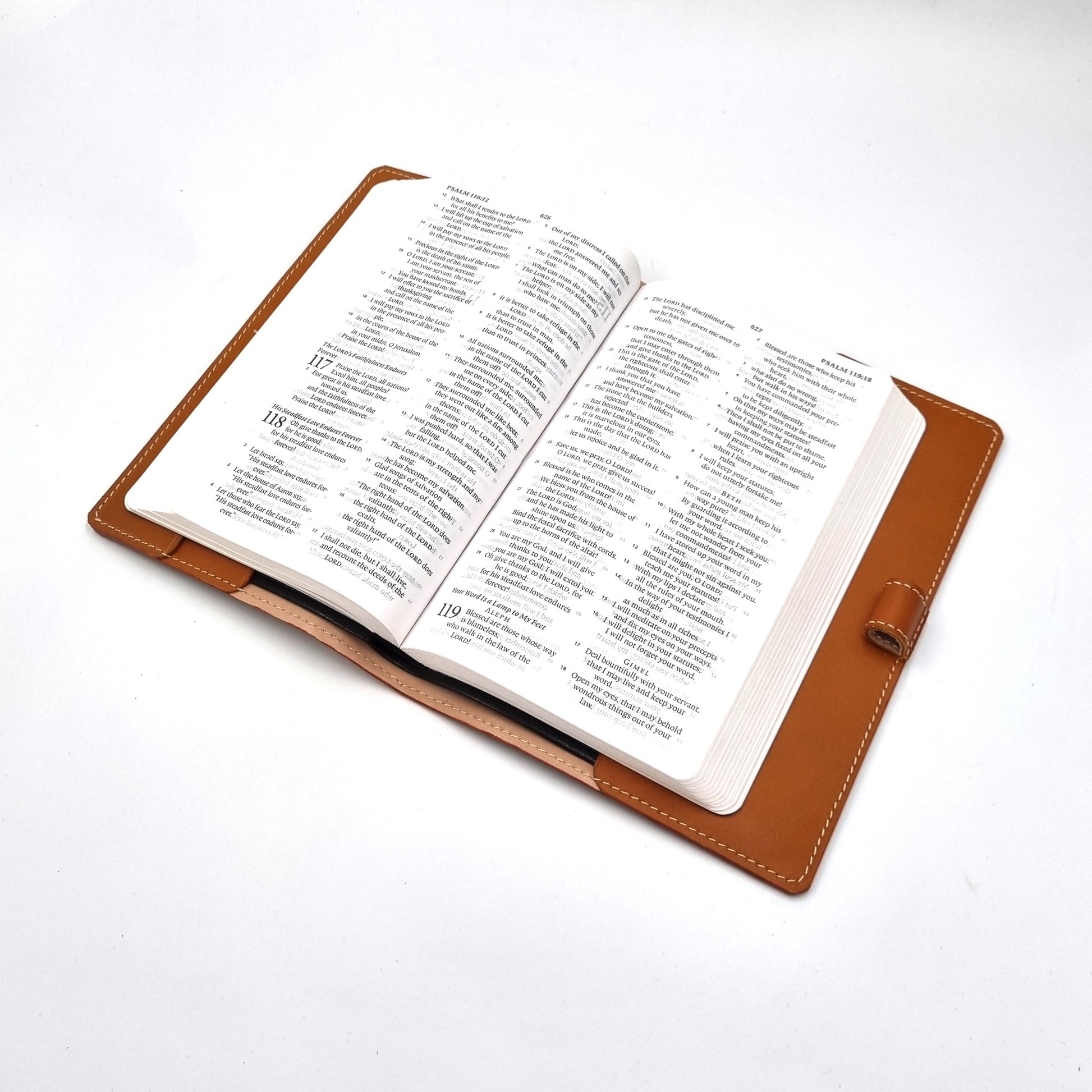 Cover fits most brands of perfect-bound and saddle-stitched spine A5 bibles.  Please check actual dimension of bible before placing order.