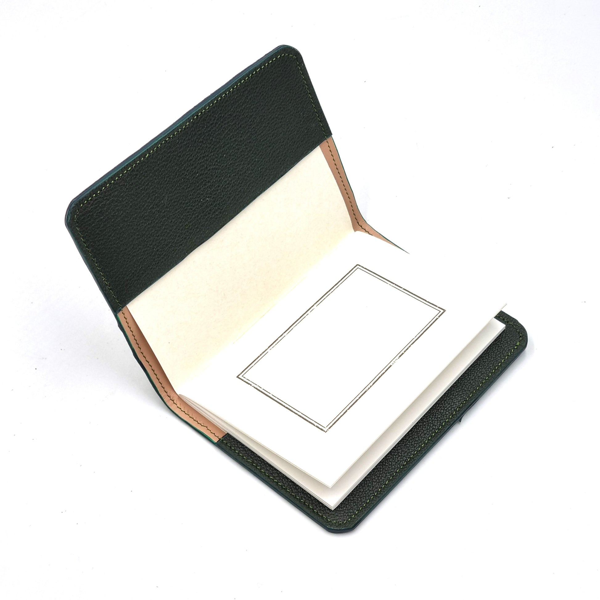 4-oz SULLY goat leather from the legendary French tannery ALRAN is used for the construction of the cover.  Full goat leather lining.  Every motif piece is hand-cut, meticulously appliqued and hand-stitched onto a leather base.  Waxed threads are used to strengthen the seams and bind the leather components.  The entire cover is saddle-stitched for extended durability - a traditional and time-honoured method in fine leathercrafting.