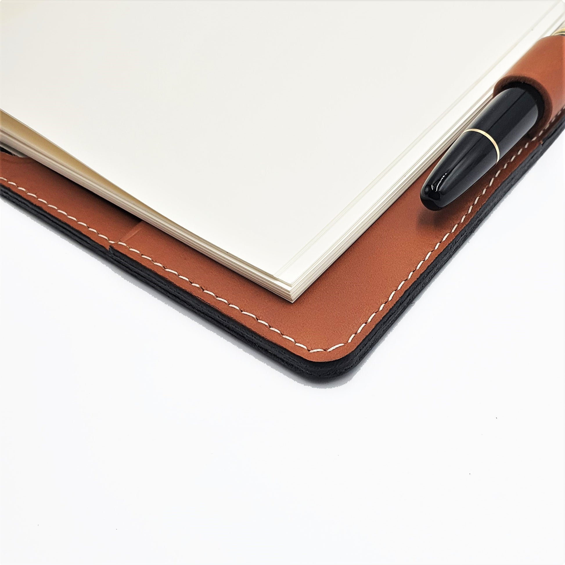 Sleeve fits selected brands of perfect-bound and saddle-stitched spine soft cover A5 plain journals, notebooks and sketchbooks including Clairefontaine, Strathmore and Muji.